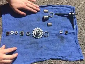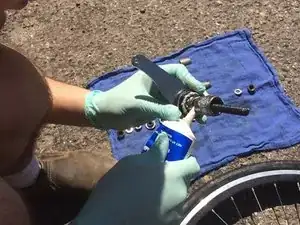 Вставьте ось и подшипники обратно в очищенную ступицу.