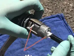 Также почистите резьбу на звезде (см. оранжевую линию).