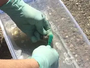 Очистите все внутренние детали в ёмкости с помощью зубной щётки.