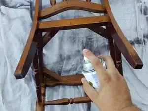 Держите аэрозольную краску на расстоянии 15–30 см от стула и нанесите тонкий слой краски.