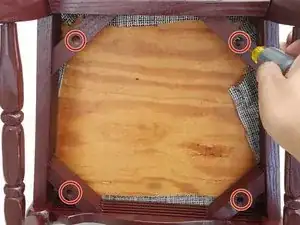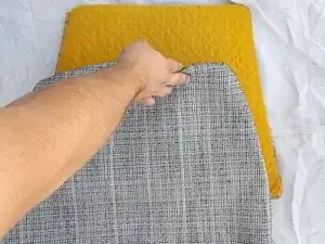 Возьмите вашу новую обтянутую подушку и поместите её на сиденье каркаса стула.