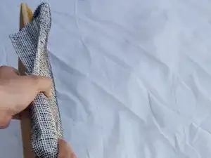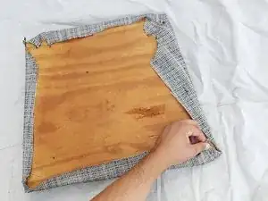 С помощью степлера закрепите край чехла, который держите, на доске.