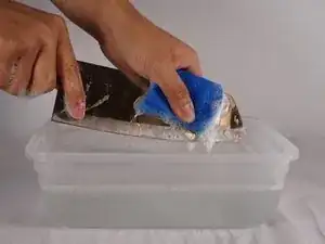 С помощью моющего средства для посуды и губки очистите лезвие и промойте водой.