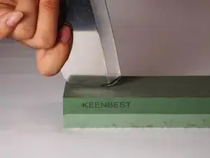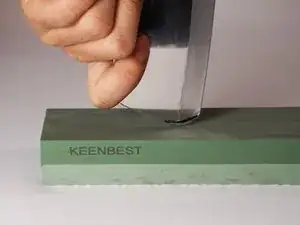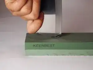 Когда вы сточили верх лезвия, измените положение лезвия так, чтобы на камень касался только наконечник.