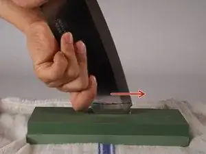 Начните точить лезвие движениями туда и обратно, толкая и тянув руками, пока не достигнете желаемой остроты.