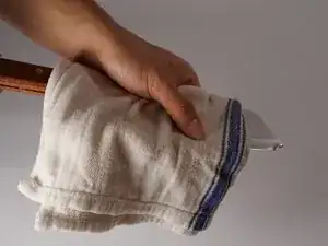 Разместите ладонь на тыльной стороне лезвия (тупой стороне) и протрите лезвие полотенцем.