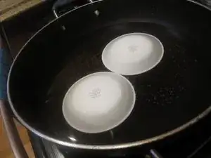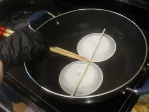 Наденьте перчатки, чтобы защитить руки от жара, затем аккуратно добавьте две миски в сковороду.