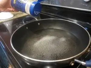 Используя глубокую сковороду, заполните дно водой.