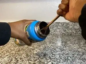Это руководство восстанавливает вмятины, образовавшиеся на металлической части бутылки, а не на любых пластиковых компонентах крышки. Этот ремонт имеет только эстетическое назначение и не эффективен для восстановления вакуумной изоляции бутылки, если вмятины повредили внутренние стенки бутылки.