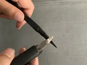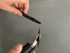 Возьмите небольшие плоскогубцы и осторожно извлеките войлочный стержень изнутри подводки.