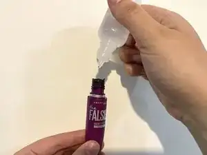 Добавьте 5 капель раствора для контактных линз в тубу с тушью и тщательно перемешайте.