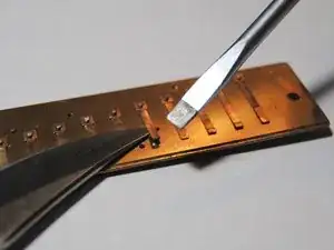 С язычками на язычковой пластине, направленными вверх, используйте тонкий инструмент (например, нож), чтобы приподнять деформированный язычок.