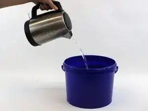 Совет: Горячая вода может остыть, поэтому лучше иметь запас воды в чайнике для подливки в ведро.