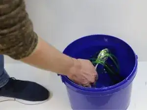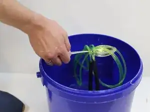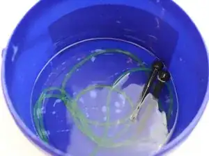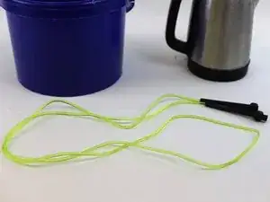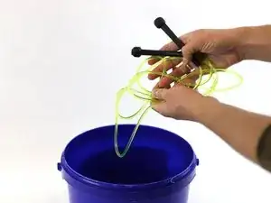 Наполните ведро горячей водой и аккуратно опустите скакалку.