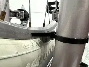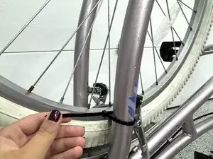 Завязать стяжку рядом с ободом колеса.