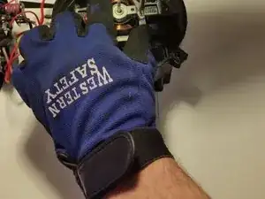 Поставьте корпус обратно на бок, чтобы переключатель безопасности больше не нажимался, и мотор отключился.
