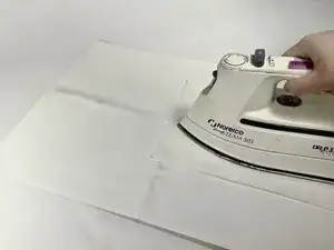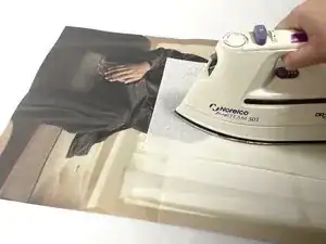 Положите выбранную прокладку на складки и медленно перемещайте утюг по прокладке и постеру, работая над всеми складками.