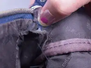 Пришейте ткань молнии к рюкзаку, чтобы закрепить её на месте.