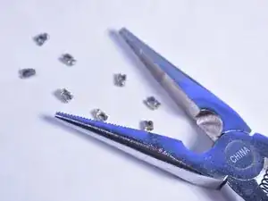 Используя плоскогубцы, снимите как минимум по 4 зубца с каждой стороны, чтобы оставить место для шва.