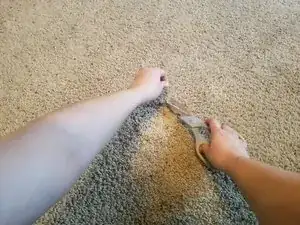 Режьте только ковер. Не прорезайте подстилку под ковром.