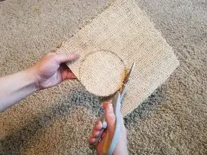 Вырежьте отмеченную форму из образца ковра ножницами.