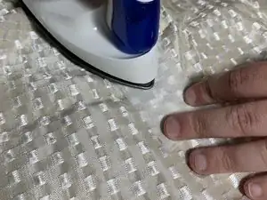 Разместите порванную штору лицевой стороной вниз на гладильной доске.