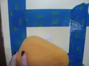 Смочите губку для краски в краске и покрасьте стену в оригинальный цвет.