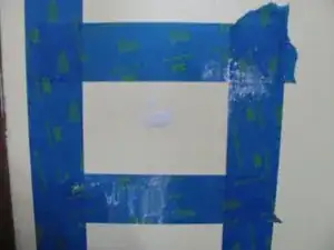 Нанесите малярную ленту вокруг отверстия, чтобы штукатурка не попала на нежелательные участки.