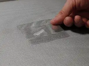 Если Вы работаете с сеткой, всё ещё закреплённой в раме, положите одну руку на сторону с заплаткой, а другой сгибайте нити с противоположной стороны. Это предотвратит повреждение сетки при нажатии только с одной стороны.