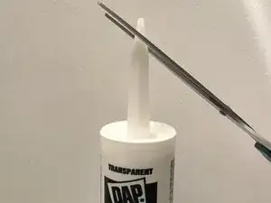 Используйте ножницы, чтобы срезать кончик тюбика герметика под углом 45 градусов.