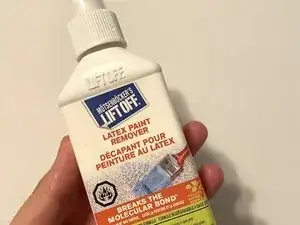 Используйте спрей для удаления латексной краски на участках, где остались остатки материала вдоль щелей. Эти участки также нужно заменить новым материалом.