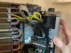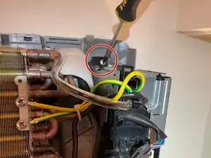Отверткой крестовой формы удалите винт в правом верхнем углу, который фиксирует монтажный блок управления.