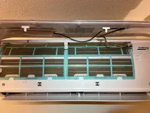 Отключите питание блока на автоматическом выключателе. Поднимите переднюю крышку внутреннего блока, как при чистке воздушных фильтров.
