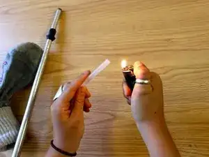 Нагрейте универсальный клеевой стержень зажигалкой.