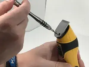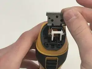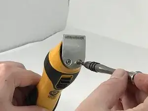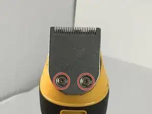 Используя крестовую отвертку Phillips #0, снимите два винта, удерживающие лезвие триммера на месте.