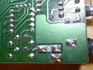 На этом усилителе слабое соединение входного гнезда с платой. Если гайка ослабнет или разъем кабеля согнется, пластины, припаянные к плате, могут отломиться, оторвав контактные площадки с платы. В этом руководстве описан процесс ремонта.