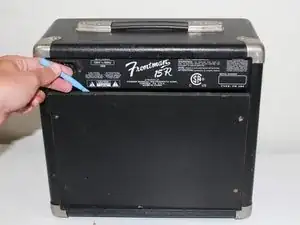 После того как винты извлечены, используйте пластиковое приспособление для вскрытия или лопатку, чтобы разъединить верхнюю часть задней панели. Возможен небольшой сопротивление, но в итоге панель отделится.