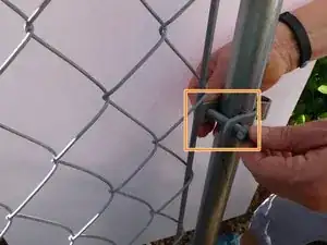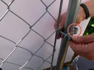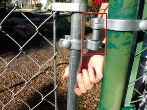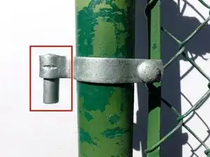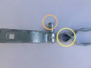 Поднимите ослабленный ремешок петли вверх, чтобы вынуть шпильку из петли на петле калитки.