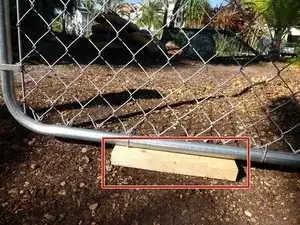 Разместите блоки на земле там, где будете устанавливать калитку. Они будут поддерживать калитку во время подключения петель.