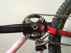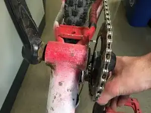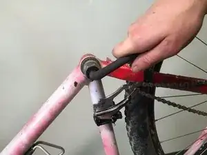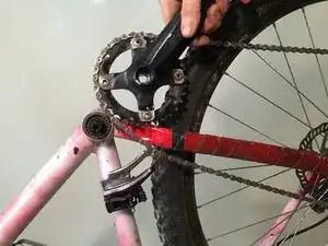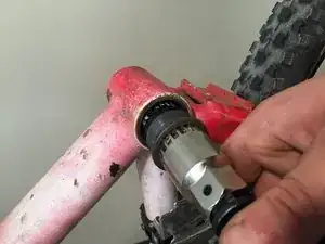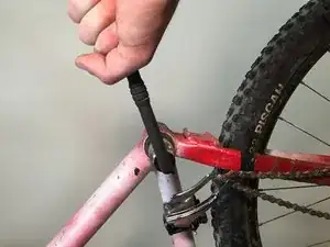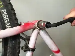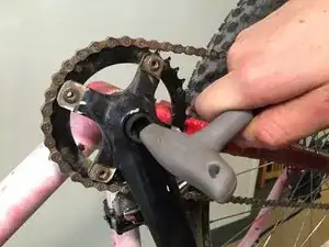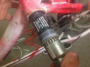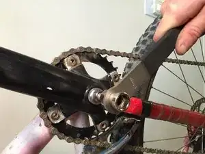 Используйте инструмент для каретки, чтобы вкрутить большую сторону (сторону трансмиссии) каретки. Убедитесь, что вы закручиваете её против часовой стрелки.