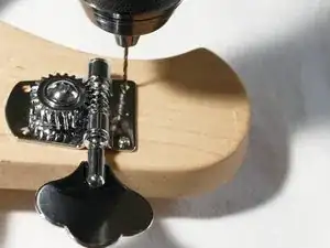 Обратите внимание на длину винтов крепления ключа настройки, чтобы оценить глубину сверления, необходимую для сверления в головке грифа.