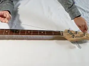 Удалите струну, протянув её через нижнюю часть баса.