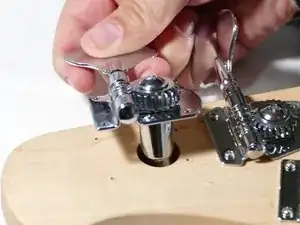 Выровняйте отверстия для винтов ключа настройки с существующими отверстиями на басе.