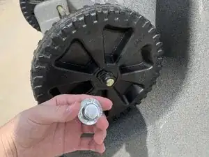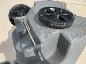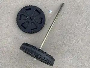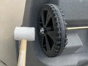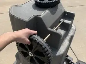 Сдвиньте другое колесо с контейнера, оставив ось прикреплёной.