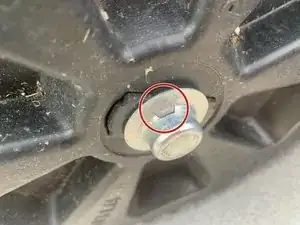 Разместите плоскую отвертку на защёлке гайки‑пала в центре колеса.