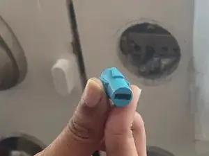 Совместите адаптер с положением, при котором он входит в центральное отверстие в месте установки замка на двери.