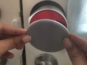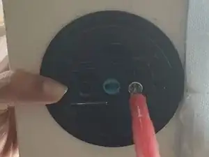 Осторожно нажмите на логотип «August» на передней крышке электронного замка, чтобы отрыть переднюю крышку (магнитную защелку).