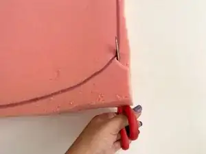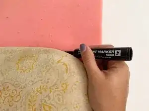 По желанию: если вы хотите также заменить поролон, положите основание сиденья на поролон и обведите его маркером. Используйте ножницы для резки поролона.