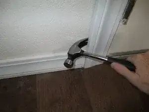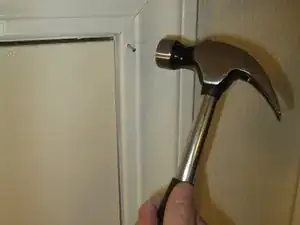 Дверная облицовка хрупкая, поэтому избегайте ударов молотком прямо по облицовке.