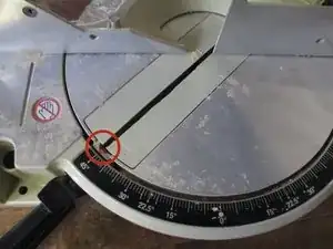 Разместите облицовку на пиле так, чтобы сделанная вами отметка была вдоль направляющей пилы.